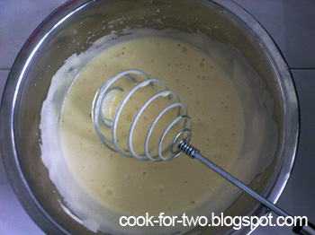 2。加入沙拉油,牛奶和低筋面粉及拌匀,使蛋浆与面粉充分混合。