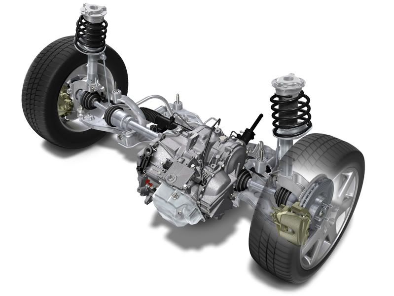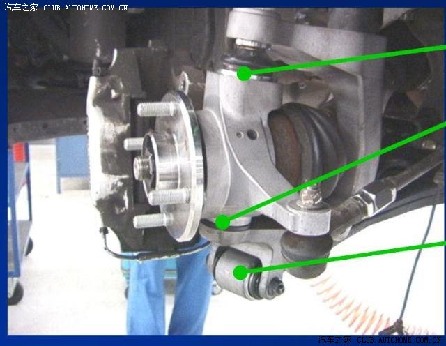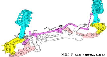 首先,我们知道,FF车的引擎扭力经过变速箱,终传,差速器传回到前轮的驱动轴,但是,驱动轴的几何位置却不与轮轴完全重合,所以驱动轴要拐两个小小的弯才能连接车轮,拐弯的地方,就由万向节(万向接头)负责连接。而这个万向节虽然可以将动力作改变方向的传递,但万向节也不是万能的,在改变驱动轴方向的同时被改变方向后的那根传动轴也会产生一定的甩动,所以,所有和万向节相连的传动轴都要安装一个抗甩动的支点起稳固作用,如果没有支点固定,后端传动轴就会像一个搅拌器一样甩动。当万向节前后的驱动轴是同一直线的话,整根驱动轴就像一根一样,这时候万向节等于没有起转向的作用,当万向节前后的驱动轴不成一直线的时候,支点上就开始受到一个力,万向节必須靠支点的反作用力把甩动的力转换成扭转的力,而因为支点是固定不动的,所以本身不消耗能量,只要万向节的磨擦消耗控制得宜,万向节的扭力传动效率相当高,尤其在改变传动角度不大的情況,磨擦损耗可能造成的左右扭力差异非常的小。