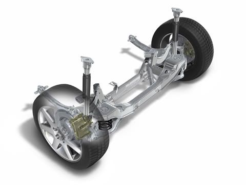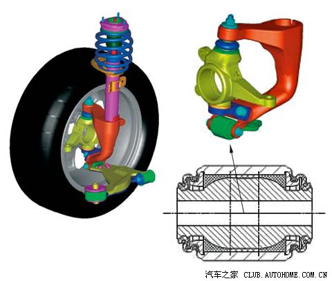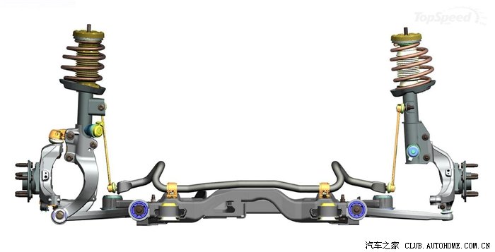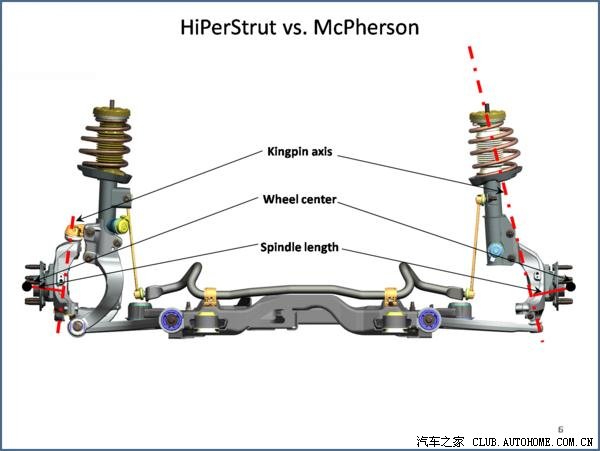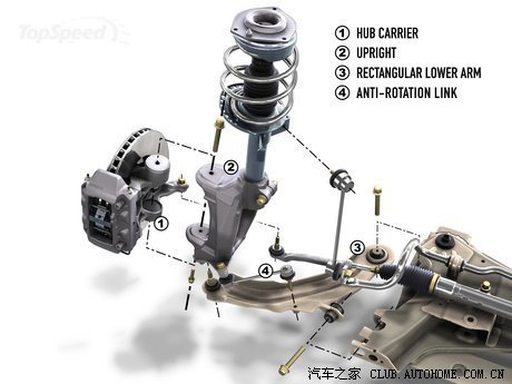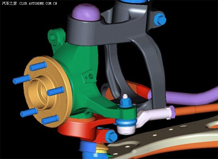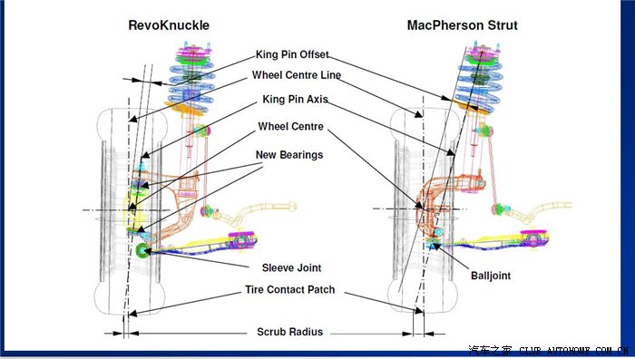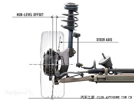 2)悬挂设计(几何结构),使用精确的双摇臂和多连杆前悬架,也可以抑制外倾角的变化,最大限度的减轻扭力转向的问题(例如福特福克斯的Revo Knucle以及Insignia的Hiperstrut);