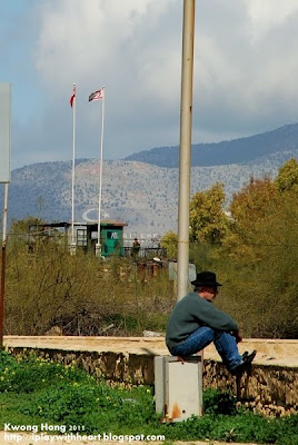 原来,在塞浦路斯独立前,Greek Cypriot希望能回归希腊,Turkish Cypriot希望能分开独立。后来两派把各自退让,从英国手上获得独立。独立不久后两派再起争执,后来就产生冲突导致今日的局面。我一直纳闷为什么在尼科西亚能看到单独的希腊的国旗,却看不见少了希腊国旗陪伴在侧的塞浦路斯国旗。Marios告诉我,塞浦路斯的国歌也是跟希腊一样。而因为政治上的对立,一些少数族群例如阿美尼亚人,被逼从Greek Cypriot或Turkish Cypriot中选择其一。这些分而治之的手法,和族群间的不容,很容易让我跟自己的文化背景联想到一块。绿线的南面是联合国承认的塞浦路斯共和国,他们认为绿线是暂时性的,绿线的海关和移民厅自然也是暂时的。但是在北部的就把边界当作是永久性的来看待。