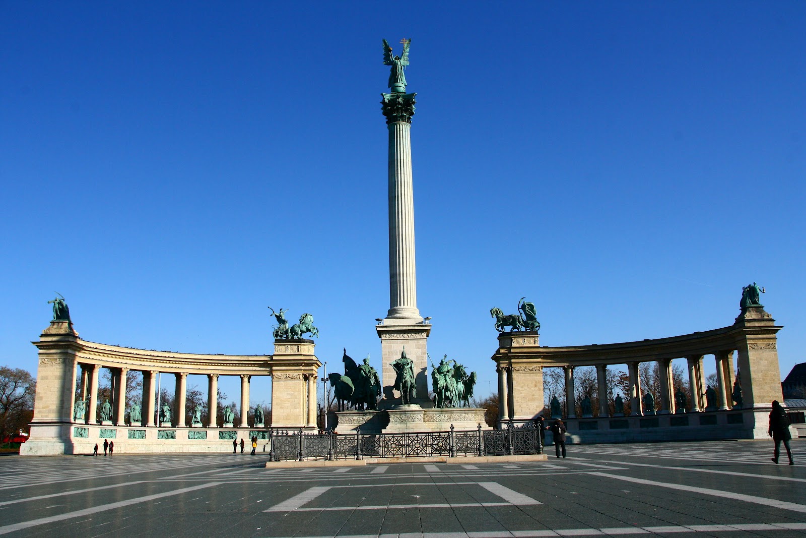 清晨的布达佩斯仿佛还在醒睡当中,大街上没有拥挤的人潮,也不见猛按车笛的车龙,一切看来是如此地恬静安祥。我们沿着小路途经犹太教堂,越过了广阔的bajesy-Zsilinszky ut.大道来到了Saint Stephen's Basilica。著名的Saint Stephen's Basilica就位于大道一旁,其96公尺高的教堂圆顶在蔚蓝的天空映衬下显得分外夺目,轮廓分明。站在教堂前方广阔无人的广场中心,眼前这座新古典主义建筑风格的教堂显得宏伟壮观,不仅让人产生渺小的感觉。