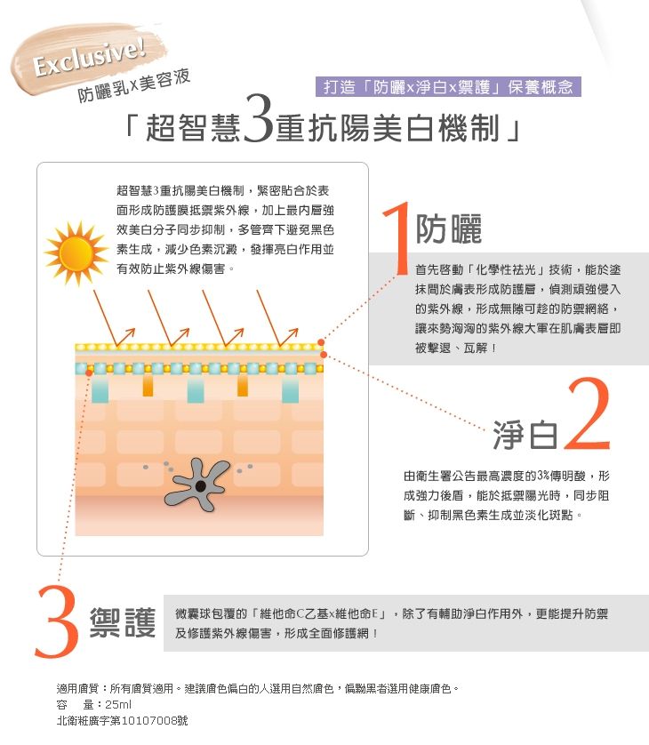 為亮白的維他命B3與淡斑傳明酸完美打底,