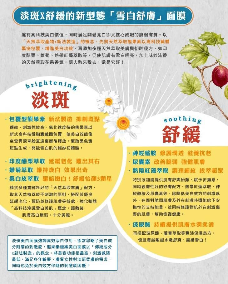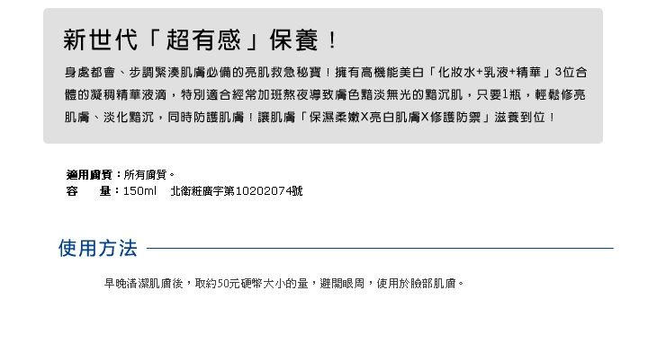 8種雪亮植萃複方,持續均勻等速調理膚色,