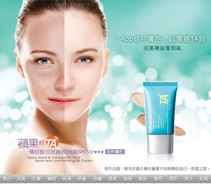 【蘋果籽傳明酸】淡斑抚痕BB霜SPF50