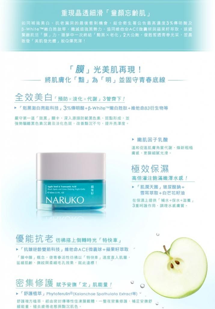 【蘋果籽傳明酸】淡斑撫紋晚安凍膜