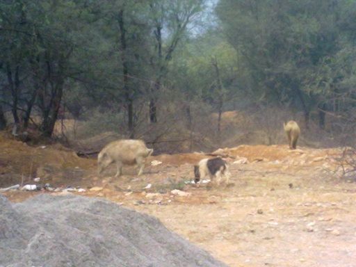 除了牛还有野猪在路上乱跑!!这个蛮吓人下~哈哈