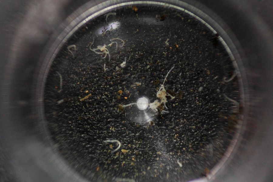 bacter 100 撒在泥上会不美观(很久也不会散)。用bacteria ball 比较好。