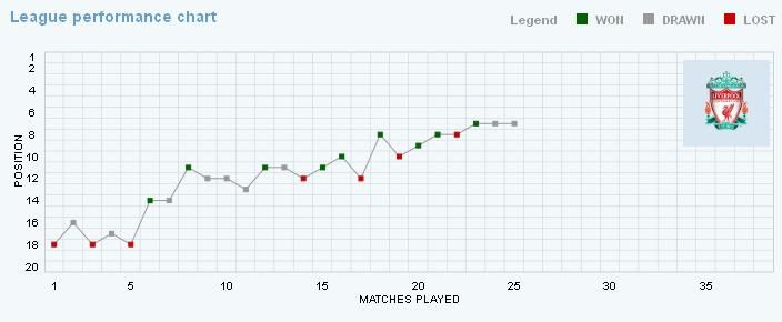 红军本赛季由于平局过多排积分榜中游,这个赛季已无力争冠,欧冠资格成了目标。在瞩目的双红会火爆对决中不敌死敌曼联[微博],不过替补出场的斯图里奇亮眼表现是球队的收获,回到主场即5比0大胜诺维奇,不做客酋长球场2球领先无奈被枪手扳平,不过按照现在形势来看,前四的目标越来越近了。