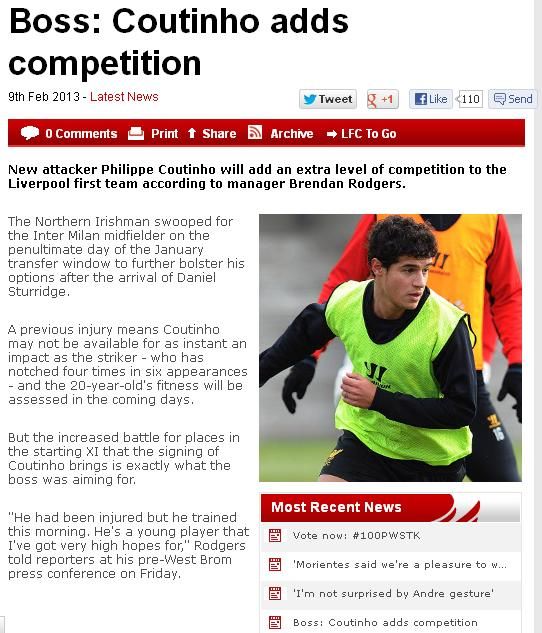 TEAM NEWS Liverpool striker Daniel Sturridge will be assessed over the weekend. The England international pulled out of the midweek friendly against Brazil with a thigh problem sustained in last weekend's draw at Manchester City. Winger Raheem Sterling, who also withdrew from international duty, is fit while new signing Philippe Coutinho has had his first week of training after his move from Inter Milan but may require more time.