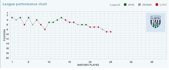 * The Baggies have lost five and won none of their last six Premier League matches.