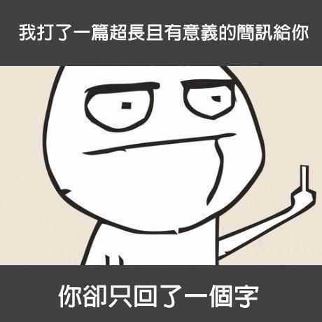 试过。。所以之后我也用同样的方式回报他那宝贵的回复。。 |