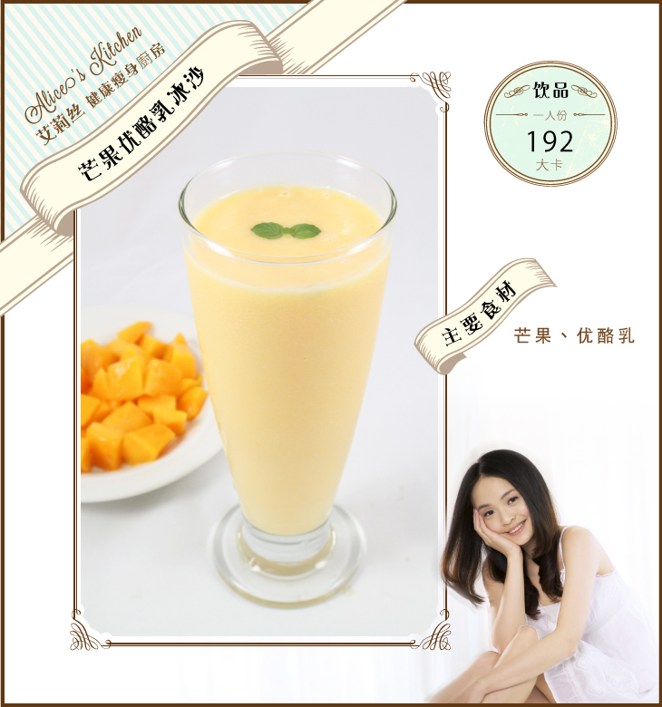 | 【艾莉丝的健康瘦身厨房】芒果优酪乳冰沙
