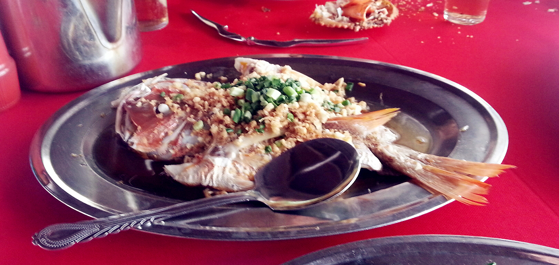 来到靠海的地方没吃海鲜就好像走宝了。我们经朋友介绍来到了海湾海鲜舫, 餐馆门口放着大大的阿贤的人立牌,有阿贤的加持,蛋蛋心想这间海鲜餐馆不会差到哪里去吧!