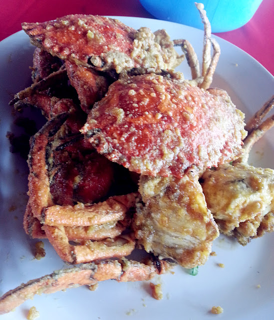 咸蛋炒螃蟹的螃蟹非常大份量,啖啖肉。咸蛋汁香味四溢, 让我这个螃蟹粉丝吃地很开怀。
