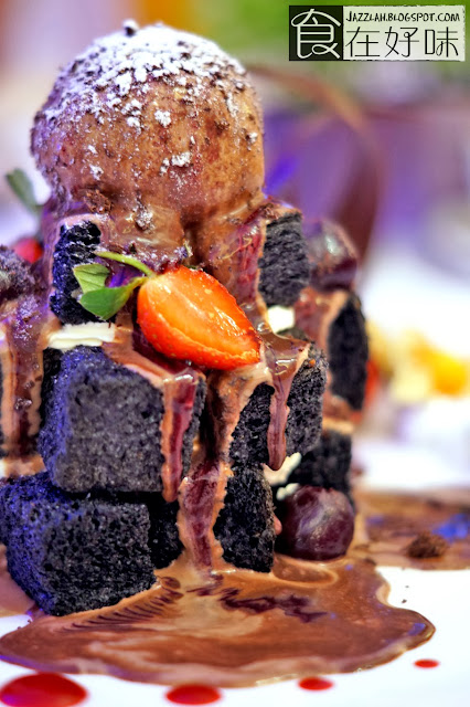 竹炭金砖外脆内软,经过巧克力酱和雪糕的辅助,细致与滑顺的交融一路从口里到胃去,美味之极