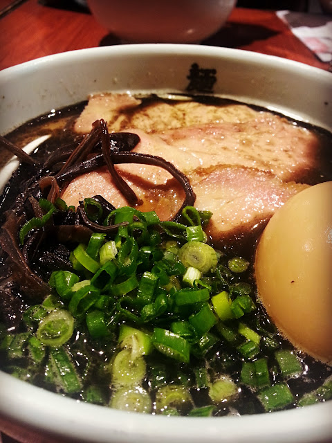 武藏面屋的拉面口味分干与汤的,蛋蛋只点过汤的。他们还提供3种汤色(白,红,黑)给你选择,白-葱味,红-辣味和黑-炸小葱与蒜味。蛋蛋点的是黑色的。