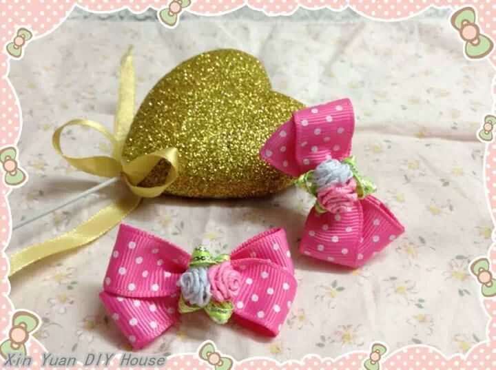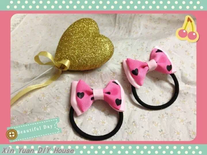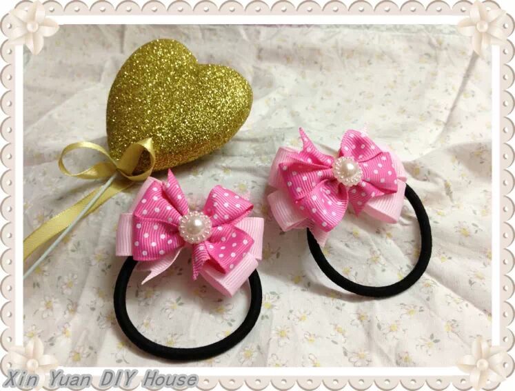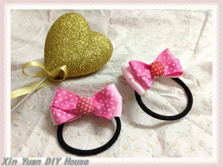 A01 - 纯手工粉红波点蝴蝶结缎带发圈RM2.90/PC