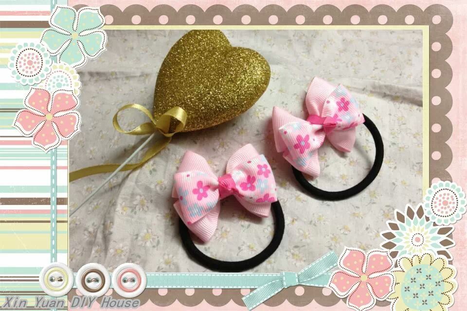 A03 - 纯手工粉红印花蝴蝶结缎带发圈RM3.90/PC