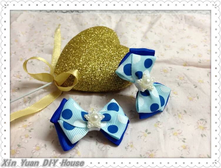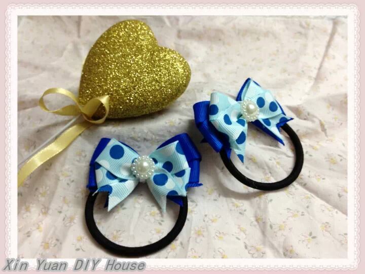 A05 - 纯手工蓝色波点蝴蝶结缎带发圈RM3.90/PC