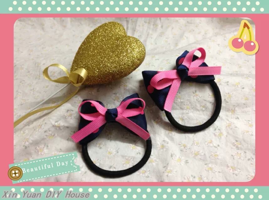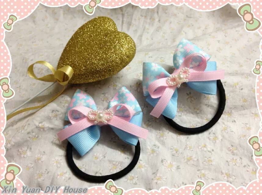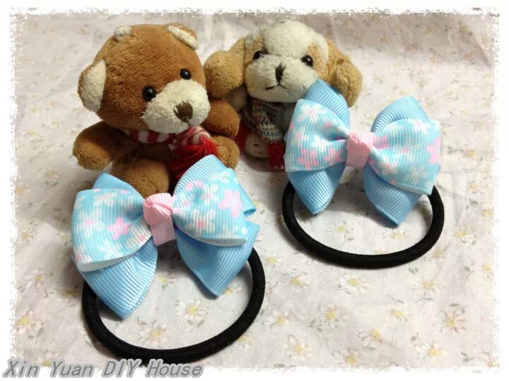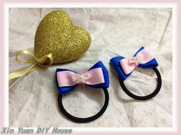 A07 - 纯手工粉红-蓝拼接蝴蝶结缎带发圈RM2.90/PC