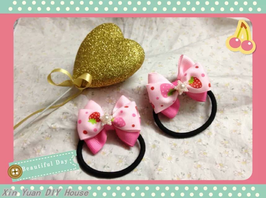 A10 - 纯手工粉红草莓印花蝴蝶结缎带发圈RM3.90/PC