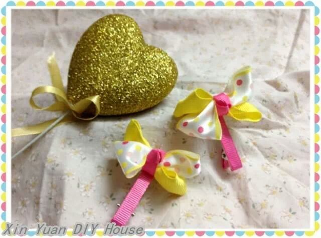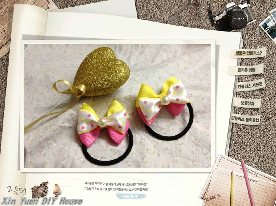 A11 - 纯手工黄-粉红拼接蝴蝶结缎带发圈RM3.90/PC