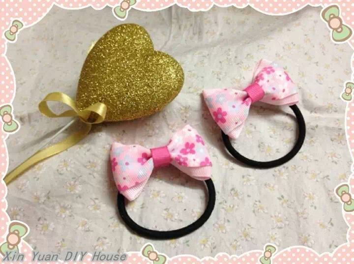 A12 - 纯手工粉红印花蝴蝶结缎带发圈RM3.90/PC