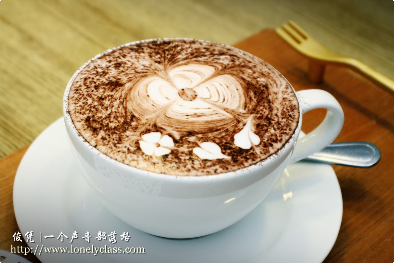 这里的拉花让我觉得他们像是在玩sand art, 洒满了巧克力粉的奶泡,再小心翼翼地在上面作画, 奶泡上清楚地看见划过的纹理是那么的细致,看了也不忍心喝下,深怕一个不小心把这美丽的画作给破坏。