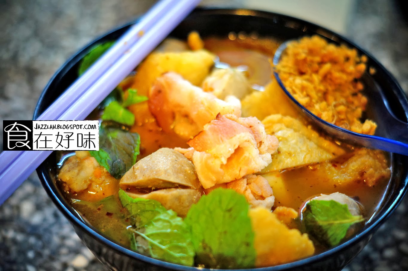 虽说炸蒜头但不会油腻腻,属于干爽类,加入到汤头时多了一份蒜香为,这是加分的地方