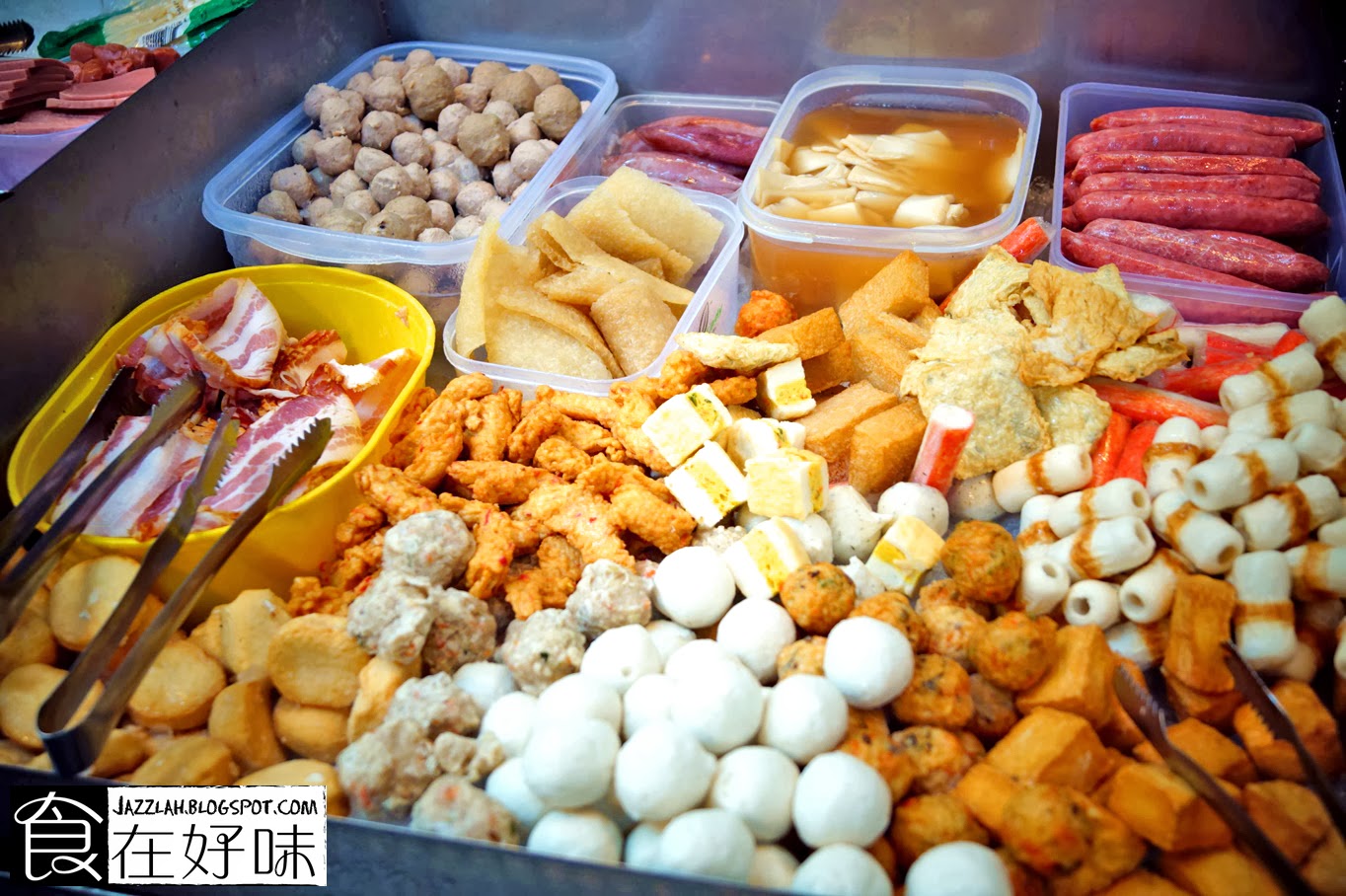 各种丸类、菇类、台湾香肠、豆皮、火腿、猪内脏、紫菜等等,少不了的当然还有炸鱼块!!