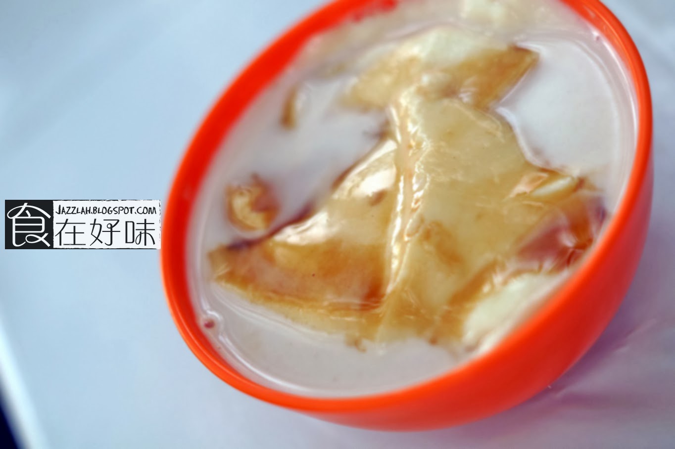 一般豆腐花都是加入黑糖或白糖但这里的豆腐花加入的却是椰浆