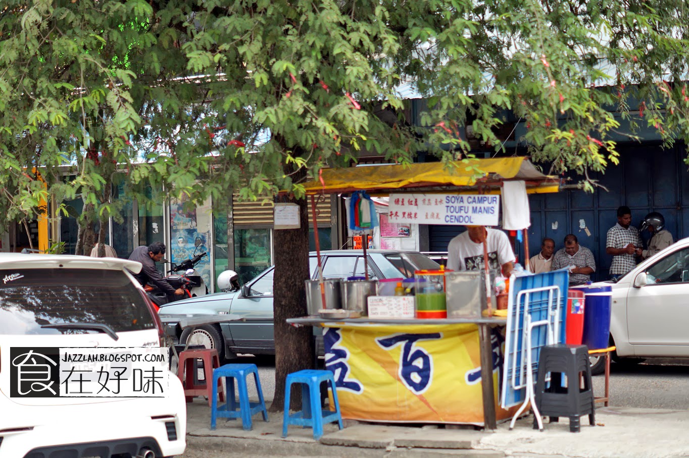 这个不起眼的豆腐花糖水档口位于玻璃市市区的中心点,也是Lorong Meranti Bukit,玻璃市悲愿讲堂前