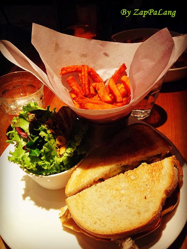 Loaded Club Sandwich 一如其名,双层的三文治里头夹了超多的食材,有鸡胸肉,烤培根,鸡蛋等等,再配上美奶滋。整体的口感很丰富,各种食材的配搭也很合口味,而且三文治用的是鸡胸肉,对于追求低脂肪的朋友就最适合不过了。有一点让我很惊喜的就是他们舍弃了一般上西餐用的薯条,而选择了用蕃薯自制的炸蕃薯条。甜甜的味道,吃下去不像薯条那么油腻,很特别呢!