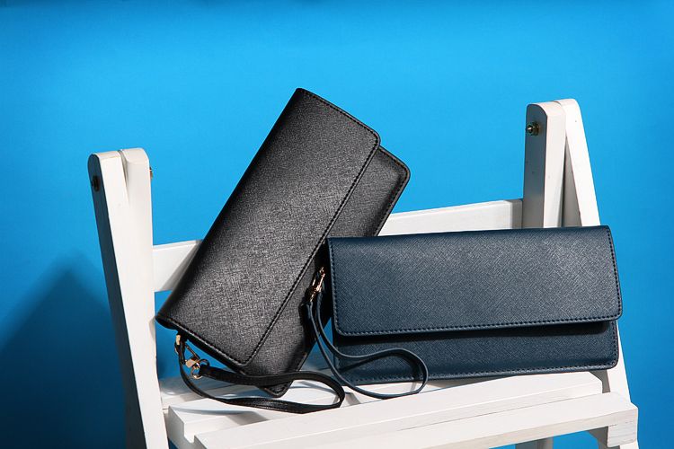 2件套的设计,手包搭扣封口,内里主拉链封口,放三星note2无压力,前后都有夹层袋,所以卡包前后都可以放,卡包是4个卡位,2个暗格,一个相片位,2个包都可以分开使用。皮子都是采用的是进口的客供压纹PU