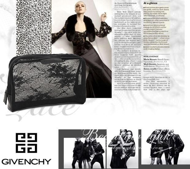 Givenchy 纪梵希 复古蕾丝钩花纱网黑色化妆包 奢华大方
