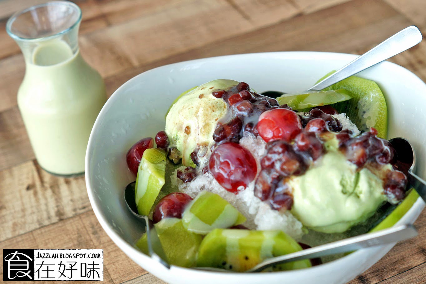Summer Matcha 【RM15.90】 这绝对是消暑良品,碎冰加入了切片奇异果、葡萄还有两球抹茶雪糕,实在冰凉 另外还有加入了Azuki Bean也就是赤小豆,虽然和红豆相似但有别于一般红豆,赤小豆较长而红豆较圆 赤小豆利水消肿,解毒排脓,功效比红豆还强一些些 单凭碎冰、水果、赤小豆和雪糕还不够味道?还有一樽抹茶可以倒入甜品内让碎冰可以和抹茶融合 个人非常中意抹茶雪糕,吃过不少日本餐厅的抹茶雪糕反而在不是日式餐厅找到最好吃的抹茶雪糕