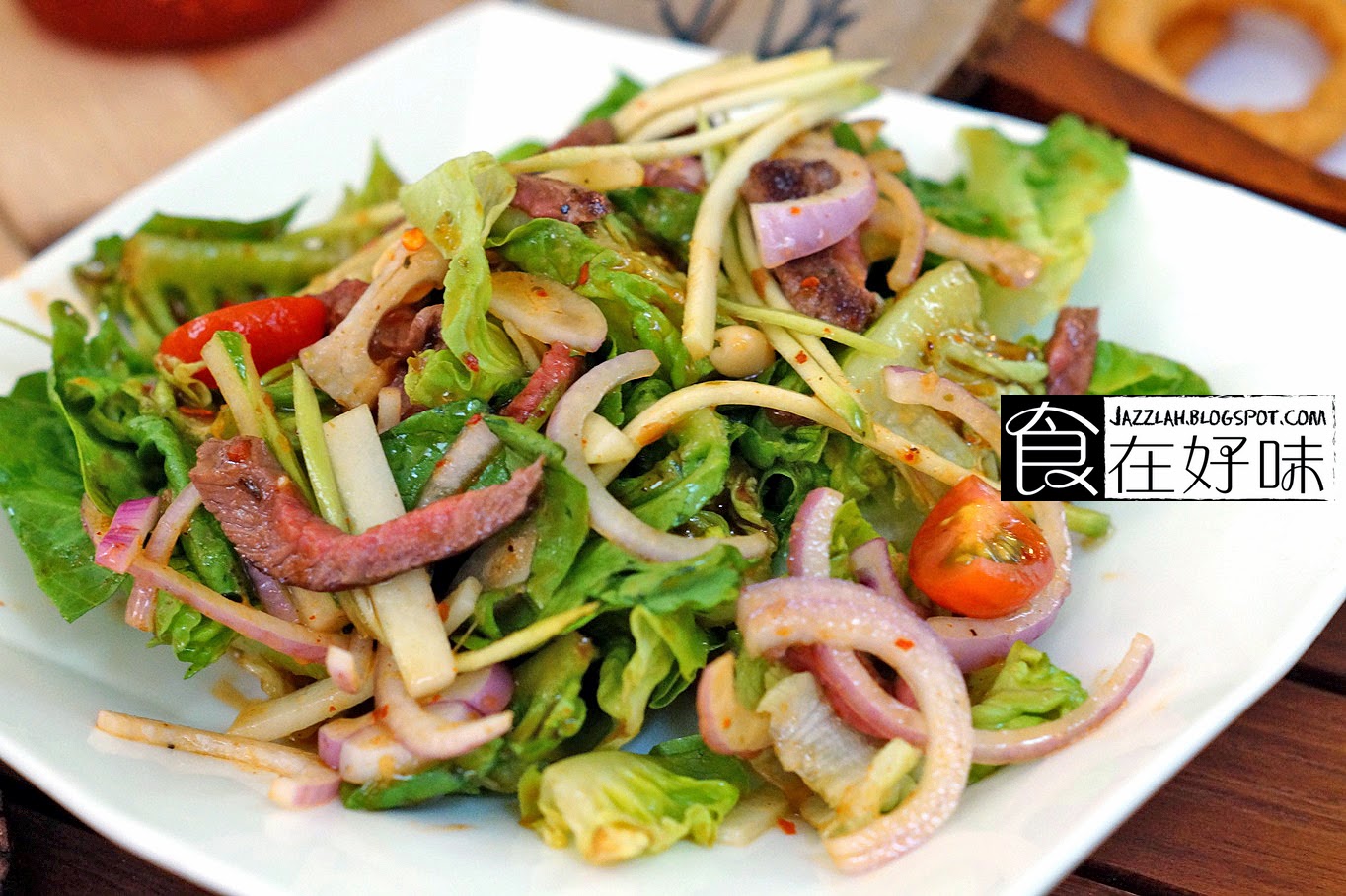 Thai Beef Salad【RM16】 先撇开不看名字尝试一口的话,已经9成猜到是属于泰式风味的沙律 使用了各种蔬菜、大洋葱、辣椒、Cherry Tomato还有牛肉 而且牛肉只是烹调至Medium Rare,吃起来依然滑嫩 作为前菜,是一道非常适合的开胃小菜 Nicoise Salad【RM16】 从名字应该难以判断这道沙律其实并不像是一道沙律吧? 尼古斯沙律其实源自法国尼斯的一道特色小菜 以色彩鲜艳、味道咸香带鲜闻名,并加入油醋酱汁调味 经过轻微烧烤的金枪鱼,吃起来外边爽口,里头滑嫩,个人相当推荐的小吃 烧烤的金枪鱼搭配着水煮鸡蛋和蔬菜调制的沙律 味道变得特别鲜明而且更有另一番风味 Moroccan Spiced Lamb Skewer【RM21】 听闻这是这里最畅销的小吃之一,吃过以后个人认为实至名归 摩洛哥羊肉串是使用香料腌制羊肉,再把羊肉、洋葱、青椒等蔬菜串起来烧烤 羊肉本身没有烤得过火,肉汁完全锁在羊肉内,吃起来没有骚味也不会太韧 另外还搭配Chickpea Salad & Eggplant Caponata Chickpea也是我们熟悉的马豆,混合了红青椒、果醋再搅拌 有口感之余还不缺味道,挺赞的 Golden Chicken Wings【RM21】 这道同样也拥有浓厚的泰式炸鸡的风味,尤其那个辣椒油沾酱,绝对是泰国土产 这炸鸡翅膀外层炸的干脆,不过内层依然保持肉汁 如今8月31号前打印以上voucher并消费任何数额,即可得到以上的炸鸡翅膀哦!!! Surf & Turf Quesadilla【RM32】 Quesadilla在墨西哥是称为“垮沙迪亚”,当中的LL并不发音 这是墨西哥料理中接受度最高的小吃之一 从外表看去,花花绿绿又有牛肉的墨西哥卷饼其实并没有想象中浓烈 虽然内陷加入了红青椒、芝士等浓烈口味的食材,但饼皮的确缓冲味道不少 其实这种卷饼营养还蛮均衡的,可以饱腹但又不必担心会高卡
