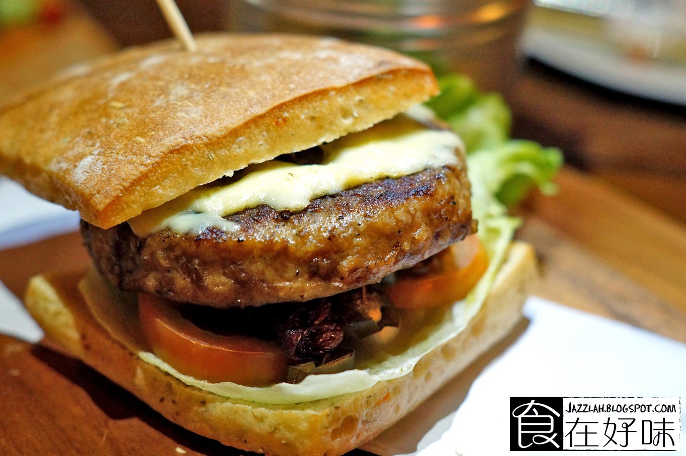 并可以Add On以下材料于Big Bun之中: Add On Cheese:American、Feta或Cheese【RM1】 Add On Cheese:Blue、Gruyere或Brie【RM2】 Add On Toppings:Fried Egg、Grilled Onion、Wild Mushroom、Smoked Beef Bacon或Avocado Guac - A (Ciabatta Bread)【RM21】 看到拿2~3公分厚的汉堡肉片吗? 当汉堡上桌时我有点后悔点这份汉堡了因为实在太大份了 基本上是鬼佬的分量了,而且还提供一桶的薯条 如果和三五好友痛饮到半夜的话,基本上可以慢慢享用这份汉堡的 汉堡中还加入了Jalapeno辣椒、鄂梨、Pepper Jack & Gruyere芝士、生菜、洋葱、番茄片等 另外加入了Chimichurri sauce,这种酱汁最适合用于烤肉,有助提升味道和解腻 而我选择的Ciabatta面包属于意大利传统面包,吃起来干而硬 如果吃不习惯这种类型面包,还是选择传统的软面包比如Sesame Bun吧