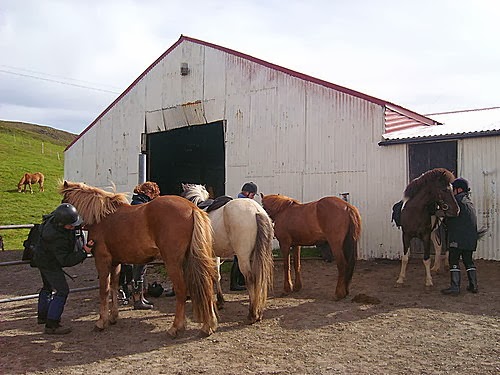 Vilborg逐一到过来跟我们谈谈我们的骑马经验, 我参加这个六天金圈之旅, 难度属四级中的第二级(以第四级最难), 需要骑手懂得慢步(walk), 长段快步(trot), 和短程慢跑(canter)的能力, 我学骑马也学了差不多三年, walk和trot当然没问题, canter一般, 几步至一个圈也可以, 就是从未有过野外骑乘的经验. Vilborg笑说我们接下来的六天旅程, 不太需要canter, 也不会需要trot, 反而会用大量的tolt. 到冰岛前看过不少冰岛马的资料, tolt是冰岛马特有的步法, 全球没有另一种马有这种步法, 可谓独「步」天下. Vilborg说冰岛马不用特别指示, 会自然的tolt起来, 骑手只要定定的坐着, 便可舒服的策马奔驰.