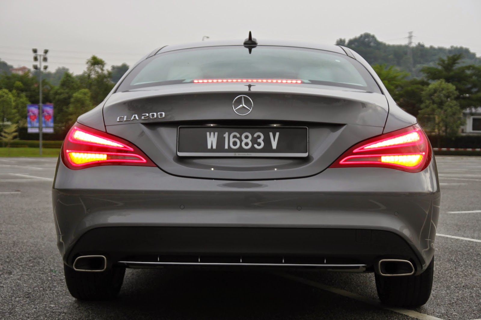 CLA在車尾燈內,明顯的蝶翼狀LED燈條,加上內鑲的煞車燈、倒車燈以及方向燈,非常漂亮。而稍加注意,其實後保桿下緣配有金屬橫條,再搭配起雙邊單出的排氣管,很是帥氣。
