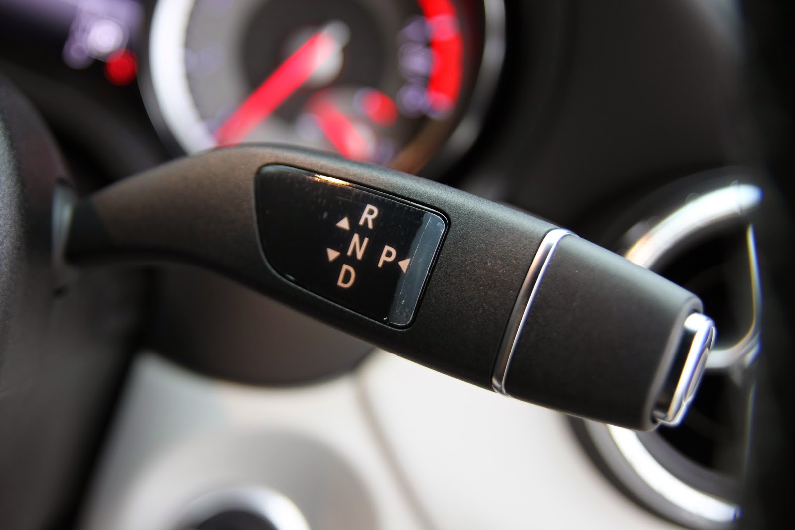 可以發現到一點就是,中控台往下延伸是沒有排檔桿的!因為它延伸了E-Class的新設計,將排檔桿配置在方向盤的右手邊部位,也就是類似許多日系車的方向號志的位置。操作方法雖然有著非常明確的提示,像是往上推是R檔;往下撥是D檔;置中為N檔;按壓鈕則是P檔,但操作起來還是有點不習慣。
