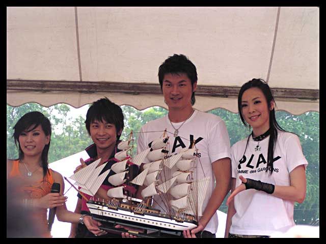 我2点41分到达现场,找不到人,打电话给cooler,原来大家都在篮球场那边等,过去打了招呼后,跟大家拍了几张照片,然后四处走,本来想找东西吃的,但看到很多人在等张智成,于是我也在那边等着拍照,4点多,张智成出现了,然后还有阿桑與JS的出现,但我只拍了几张而已,随后找到米粒,跟她拿了票,请她吃雪糕,再到入口处跟大家会合,入场的时候最辛苦,前面左右四五个小妹妹将我紧紧夹着,动弹不得,后面又不听的挤来,几乎窒息,好不容易进到场内,好位置都被人站完了,勉强挤到前面,根本拍不了,站了20分钟,决定放弃了,退出来,但发觉原来后面很多空位,于是坐了下来休息,虽然也能勉强拍到一些照片,但不是很理想,用带来的望远镜看,这望远镜果然带得好,所有的艺人都看得清清楚楚,,基本上这次的演唱会看得很爽,有网友认识,有这么多歌星看,而且还是大牌的呢,有照片拍,这是很难得的,这里谁有拍到照片的请尽量贴上来让我们欣赏,感激不尽..