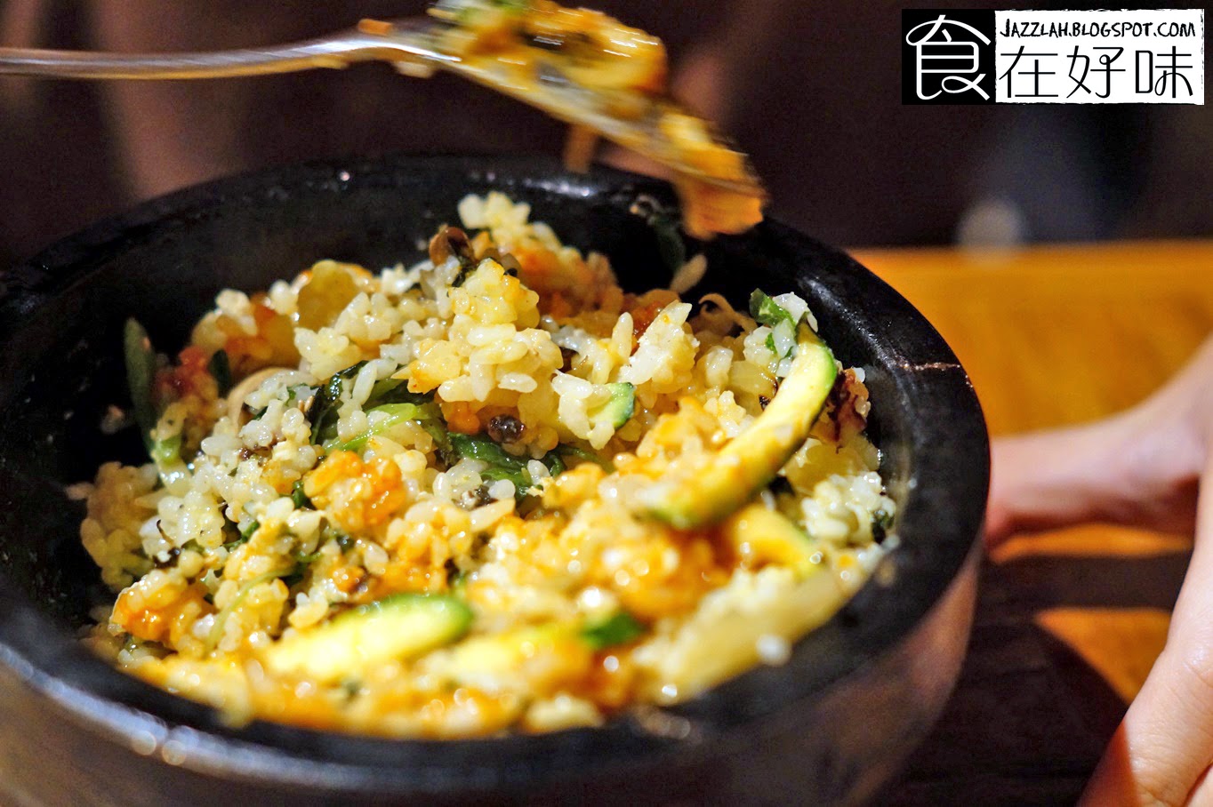 而Hot Stone Bibimbap在一上桌后必须尽快搅拌以免让饭变焦而黏在锅底