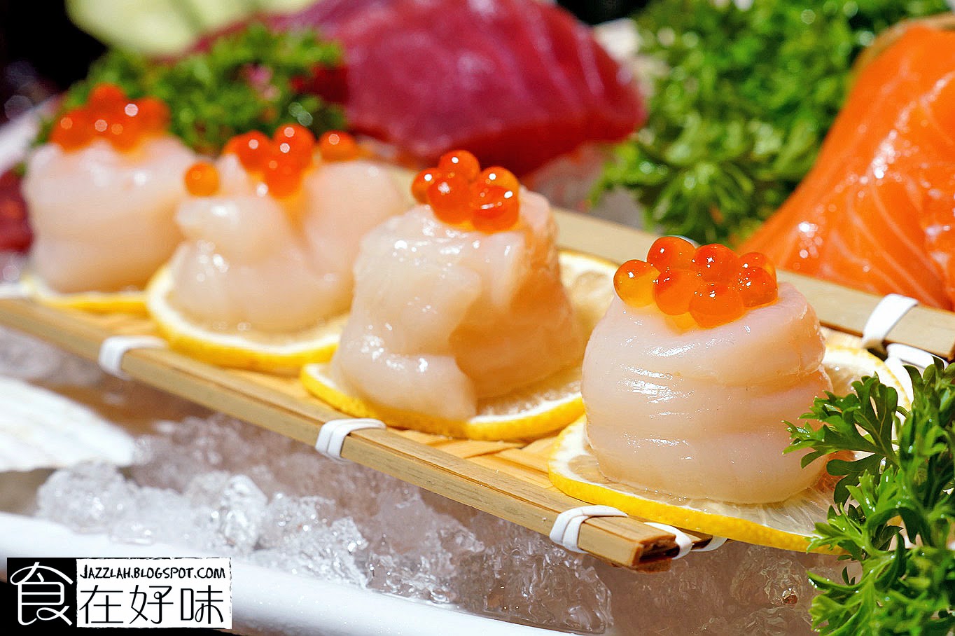 Hokkaido Scallop【RM40/4pcs】 日本北海道进口的新鲜刺身带子,也就是日本人熟知的扇贝 解冻后的扇贝以生食最能品尝海洋扇贝的美味和精髓,并可以完全感受到海洋味道 Kizuna以新鲜解冻的刺身扇贝搭配Ikura鱼卵,吃的完全是原始的海洋生物味道 刺身扇贝充斥着海洋气息,口感也相当丰富而Ikura鱼卵虽然是配角但其鲜味依然锁在其中