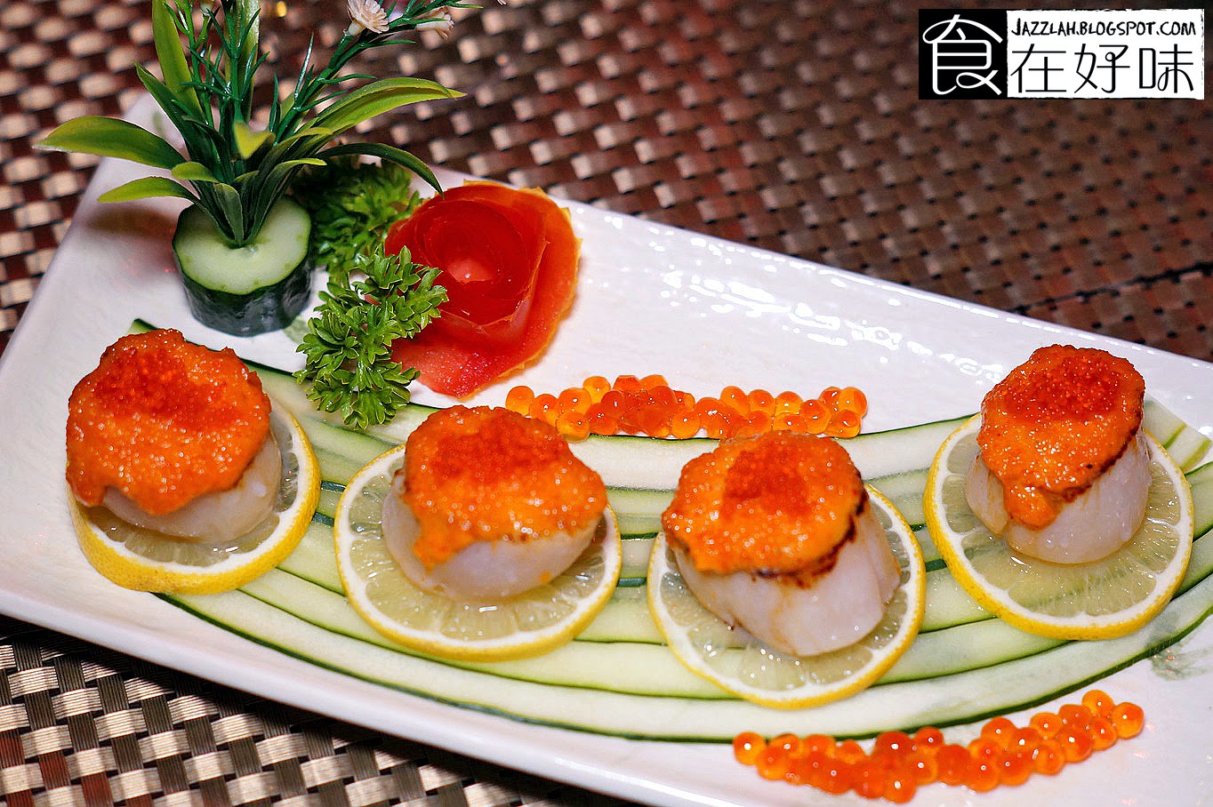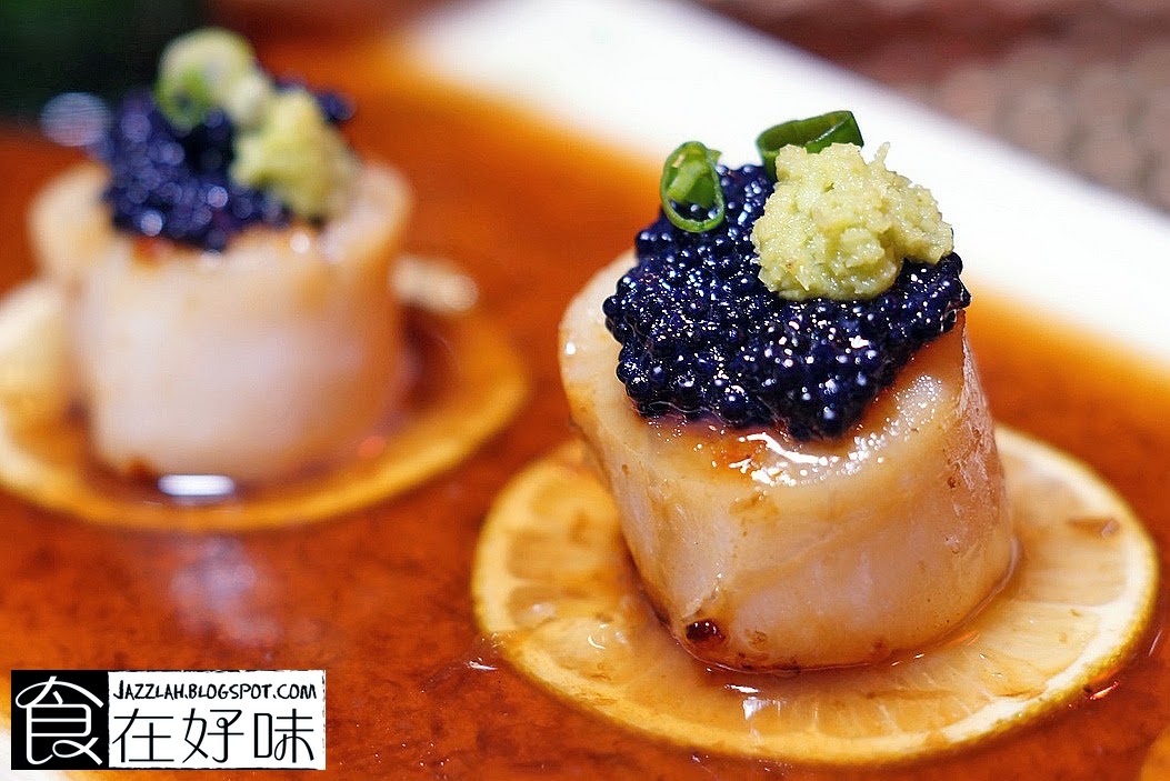 香醋带子【RM60/4pcs】 这次Kizuna新菜单中主要的主角之一,也就是一颗颗肥美的北海道带子 北海道带子配上西方三大珍味之一的鱼子酱,简直就是奢华的飨宴 鱼子酱含52%的水份,28%的蛋白质,16%的脂肪,1.5%的糖,1%的维他命 鱼子酱配上带子基本上是绝配,两者基本上吃的都是其原始的味道 虽然带子略烤过一番但主要是提升自身的香气,而香醋仿佛成为了辅助带子的衣裳 唯一美中不足的是放在鱼子酱之上的芥末似乎多了一些,吃起来芥末味道掩盖鱼子酱味道了