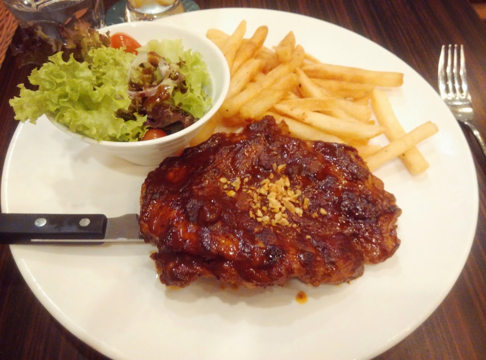 結果新的一盤等到我的豬排幾乎吃完了才上(我已經盡量慢動作了), 這種服務還真的要改進. 自問並不是無理取鬧的要求更換, 只是味道真的有問題才反映的, 為甚麼不是儘快的糾正錯誤而要讓我們等這麼久呢....