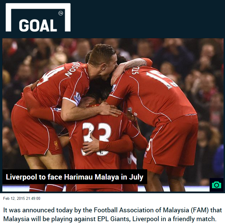 作为2015-16赛季季前备战的一部分,利物浦将在今年7月前往澳大利亚进行两场热身赛。