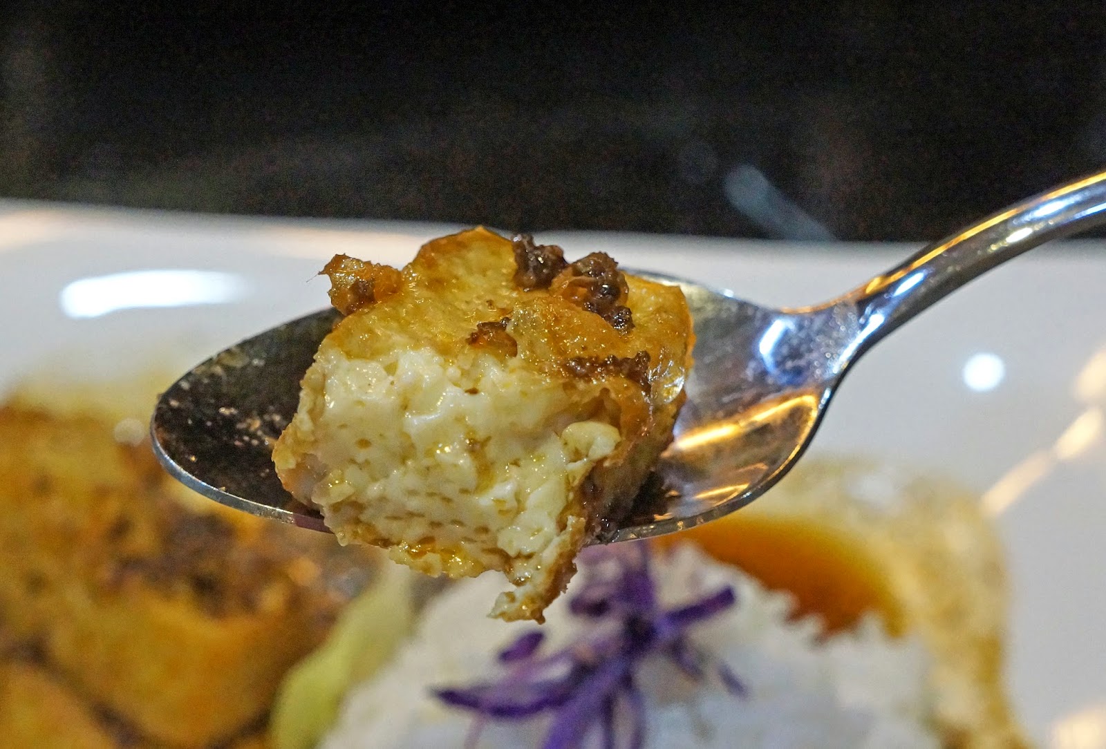 豆腐是类似蛋豆腐的口感,我很喜欢这豆腐,口感很滑嫩;一口咬去有脆香的外皮,还有软滑的豆腐肉,实在太满足了。