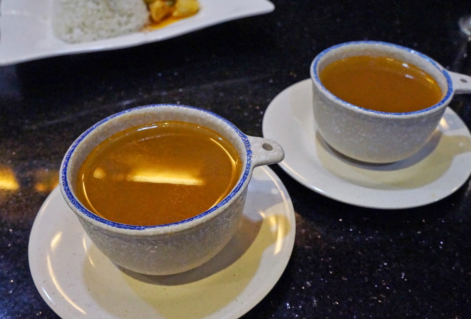 食物上桌之前,店家先端上了两碗附送的汤,汤感觉很“浓”,不像那种鸡饭摊会附送的“水”汤。