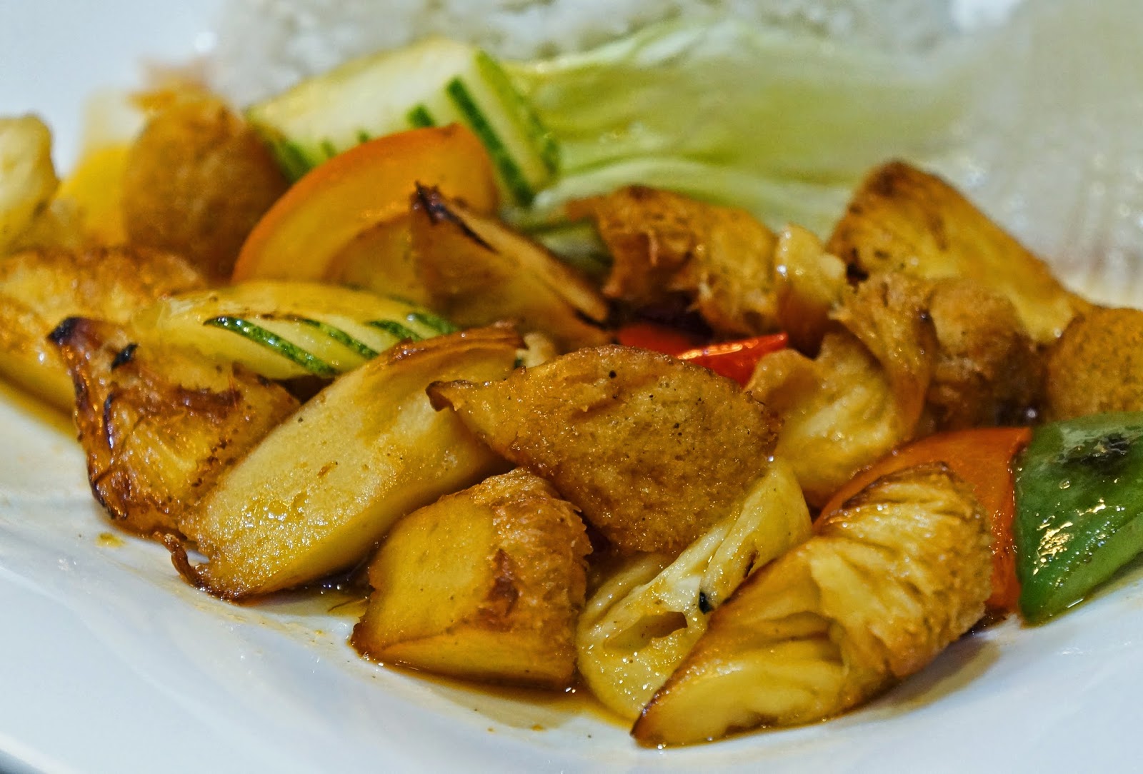 食物选择有斋鱼、豆腐、菇类、素肉、蔬菜与汤,价格嘛在冷气餐厅中算低的吧。